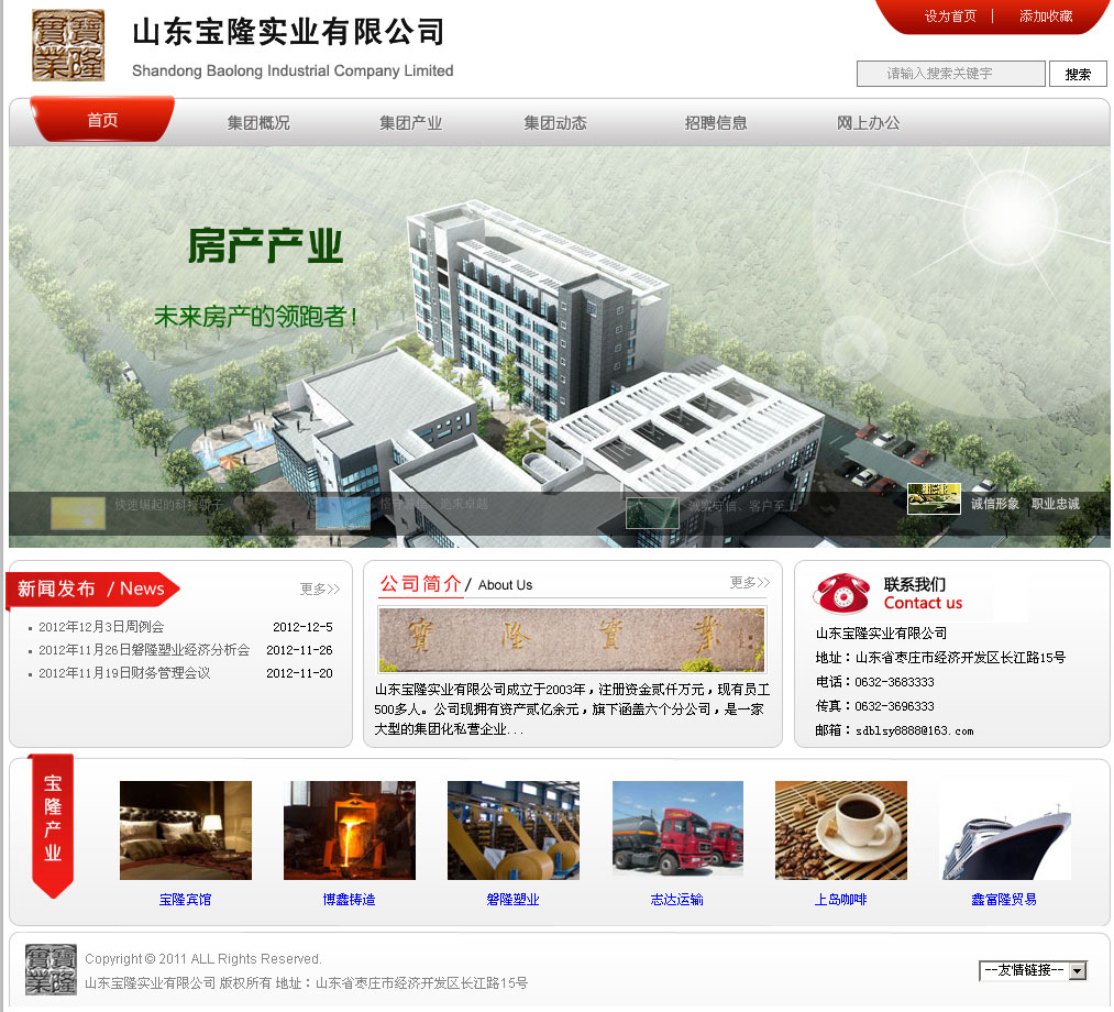 所屬行業(yè):寶隆實業(yè)公司 單位名稱:山東寶隆實業(yè)有限公司[棗莊網(wǎng)站建設(shè)項目]網(wǎng)站地址: